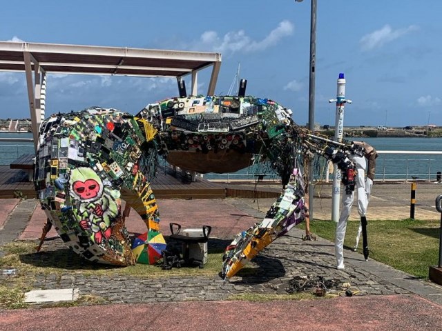 O calçadão da Avenida Alfredo Lisboa, no Bairro do Recife, foi o lugar escolhido para receber a instalação artísitca intitulada "Caranguejo Cibernético", escultura que será entregue ao REC'n'Play e a Cidade de Recife na próxima quarta-feira (15), pelos realizadores do ‘Fórum Nordeste de Economia Circular (FNEC)’.